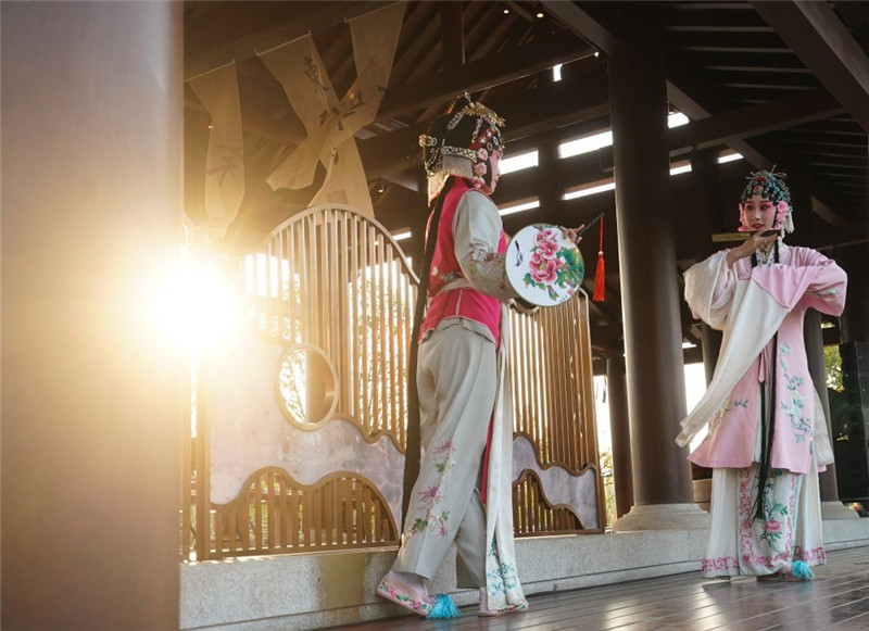 2021年4月15日,昆曲演员在江苏园博园南京园排练。季春鹏摄/本刊
