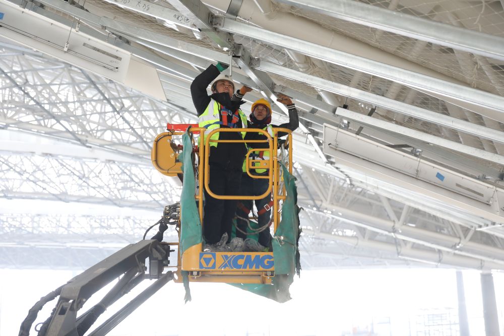 2月17日,在乌鲁木齐机场改扩建工程项目工地,工人正在进行新建航站楼内部施工。(受访单位供图)