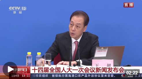 十四届全国人大一次会议今日(3月4日)在人民大会堂举行新闻发布会,大会发言人王超就大会议程和人大工作相关问题回答中外记者提问。