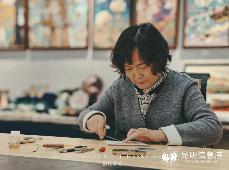 掐丝珐琅彩画是经过设计、绘图、制作线描图、掐丝(即用金属丝在线描图上勾勒出形状)、上色(即用珐琅釉料进行填色),用冷处理的技艺达到水晶瓷面的效果。樱花节期间,昆明市非物质文化遗产掐丝珐琅彩画第六代传承人、春城首席技师邓璧玲作品将在非遗展上进行展示。