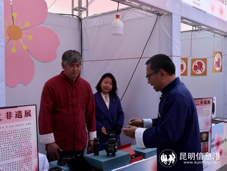 在昆明动物园中心区及樱花区八角亭“非遗展示馆”内,设置有糖画、面塑、非遗唐菓子、剪纸展示区,非遗传承人们妙手生花,几下便勾勒出栩栩如生的糖画、面人、侧影剪纸,制作精致的非遗唐菓子引得来往游人驻足观看。葫芦丝展区也颇受游客关注,宛转悠扬的葫芦丝声声入耳,以声传递云南传统乐器之美。而滇派刺绣、锦粹服饰、逸品生香、掐丝珐琅彩画、乌铜走银等精工巧作,也用精巧构思、精湛手艺展现了非遗传承人们的匠人匠心。市民游客可于3月1日至4月9日前往展区观展。