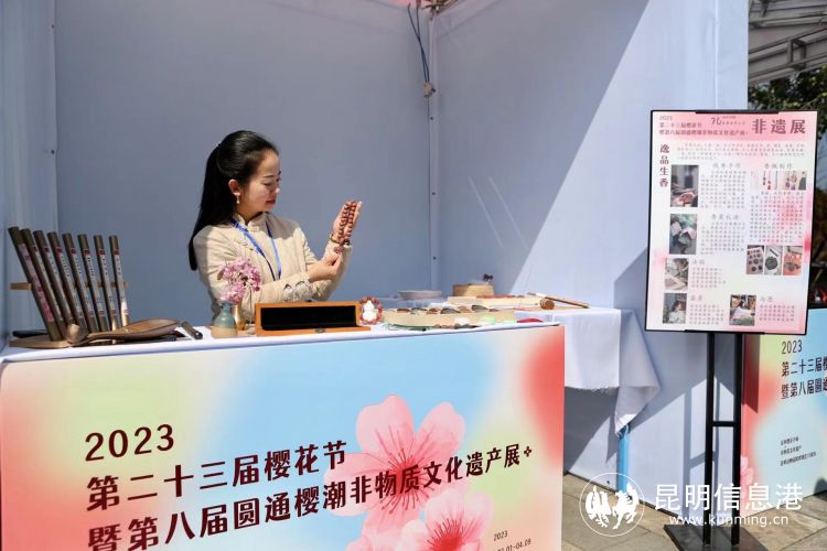 昆明动物园第二十三届樱花节暨第八届“圆通樱潮”非物质文化遗产展正式开幕。樱花节期间,园区内特别设置代表性非物质文化遗产展示系列活动,让游人在赏樱游园之余,零距离感受云南非遗文化。