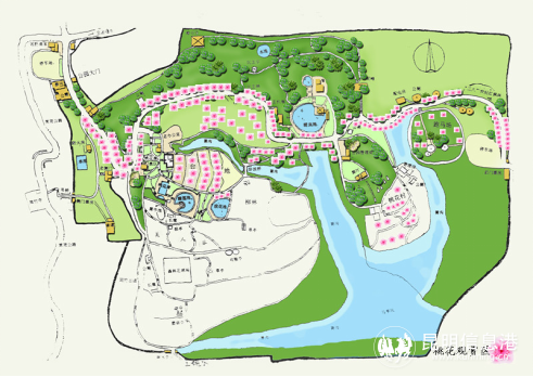 1、桃花源景区:从公园办公区沿主路到公园西门,集中了公园大多数桃花品种。