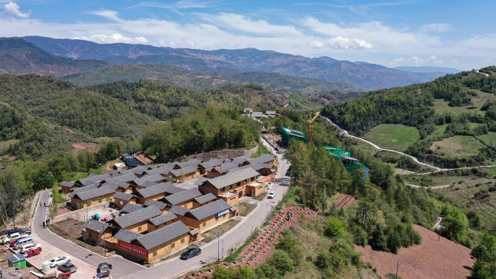 这是2022年4月21日在四川省凉山彝族自治州昭觉县三河村拍摄的村民聚居点(无人机照片)。新华社记者 王曦 摄