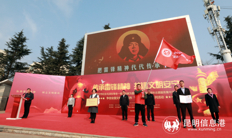 在日月湖广场举行的启动仪式上,青年志愿者代表宣读了倡议书;安宁市有关领导为2022年学雷锋志愿服务先进典型颁发了证书、奖牌;并为志愿服务队授旗。