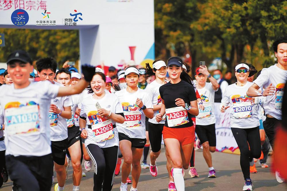 3月5日,奔跑彩云南九大高原湖泊领跑赛在华侨城昆明阳宗海度假区开跑。600余名跑步爱好者沿着美丽的阳宗海湖畔,在花海掩映的赛道上感受春日美景。