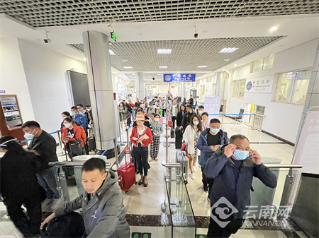 移民管理警察温馨提示旅客,请实时关注中老铁路客运列车到发动态(目前中老铁路中国磨憨至老挝磨丁段仍处于“客停货通”状态,乘坐铁路交通出行的旅客仍需转道磨憨口岸出境至老挝),错峰出行,避免拥堵耽误行程。(云南网 通讯员苏瑞栋 摄影报道)