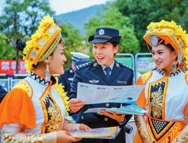 南华县志愿者进行主题宣传。记者 吕瑾 摄