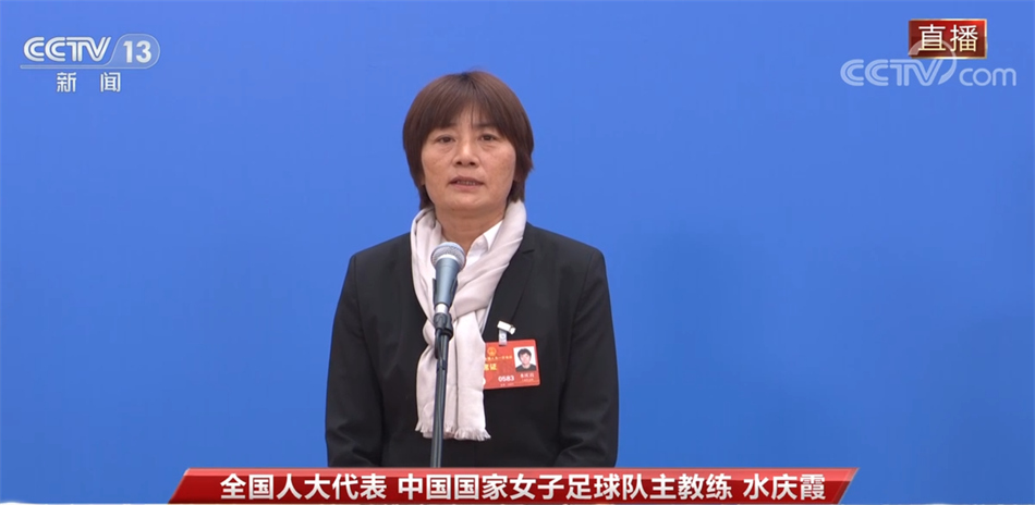 全国人大代表 中国国家女子足球队主教练 水庆霞:大家好!我是水庆霞,前中国国家女子足球队队员,退役后从事教练员工作,现任中国国家女子足球队主教练,今年当选十四届全国人大代表。2022年,我带领中国国家女子足球队,时隔十六年重夺亚洲杯冠军。