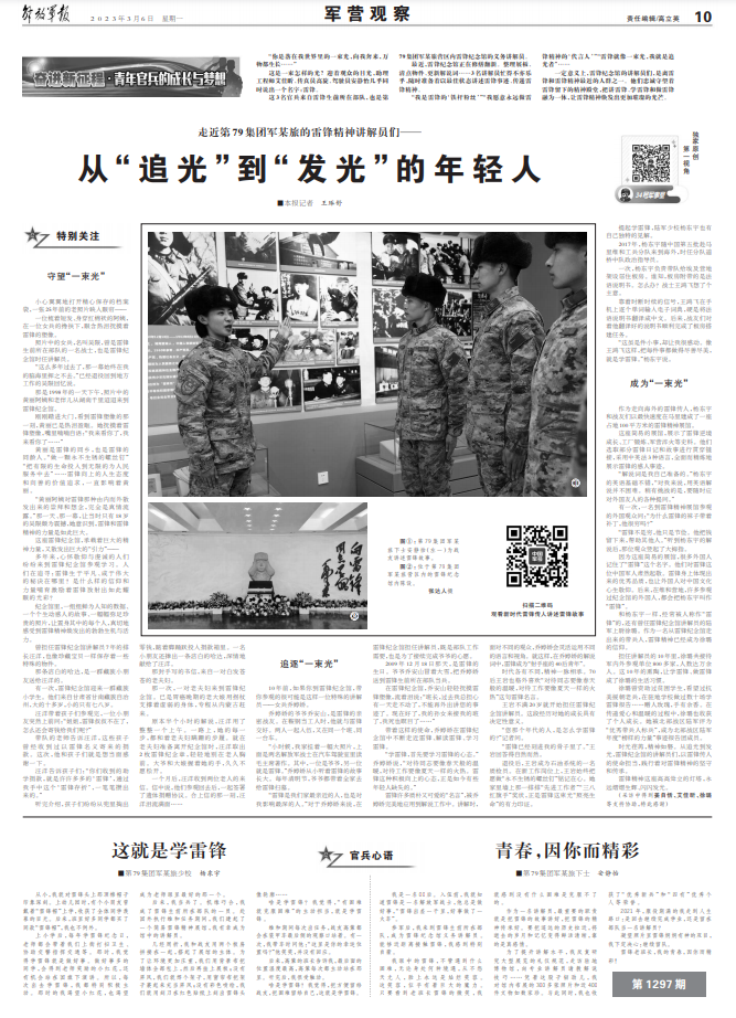 这是一束怎样的光?迎着观众的目光,助理工程师艾佳昕、传真员高旋、驾驶员安静怡几乎同时说出一个名字:雷锋。