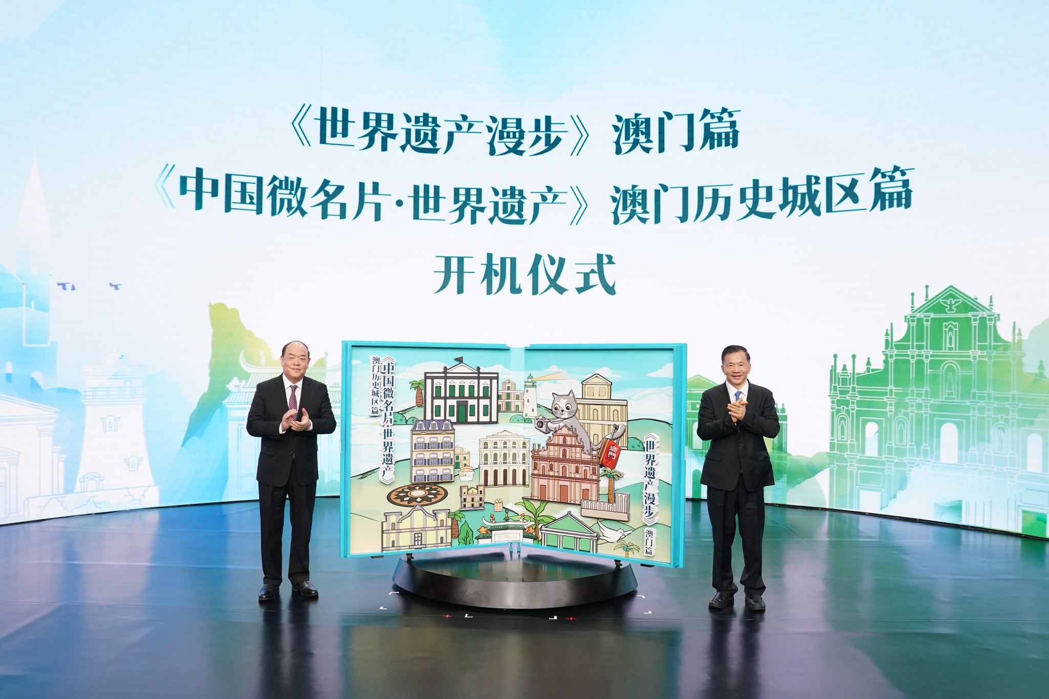 活动上,由澳门特区政府与中央广播电视总台联合摄制推出的纪录片《世界遗产漫步》(澳门篇)和《中国微名片·世界遗产》(澳门历史城区篇)同步开机。节目将邀请受众跟随镜头“漫步”澳门历史文化街区,沉浸式体验澳门东西交融、独一无二的城市魅力。