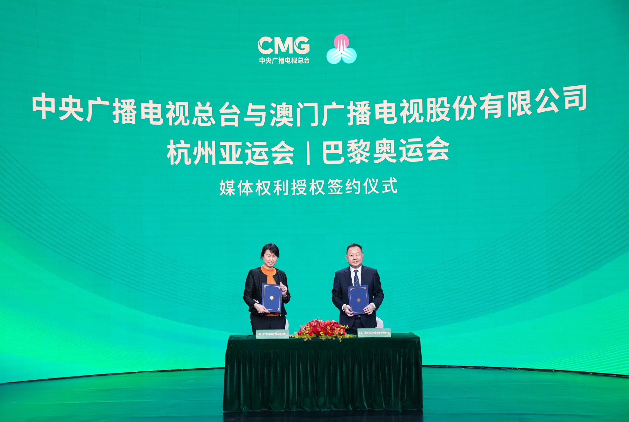 仪式上,中央广播电视总台体育青少节目中心负责人和澳门广播电视股份有限公司代表签署了《第19届杭州亚运会媒体权利许可协议》和《第33届巴黎奥运会媒体权利许可协议》。根据协议,总台将自身持有的杭州亚运会赛事节目、巴黎奥运会赛事节目电视版权免费提供澳广视播出。这是继东京奥运会、第十四届全运会、北京冬奥会、成都大运会等赛事授权后,总台再次联手澳广视为澳门同胞带来精彩的体育盛宴。