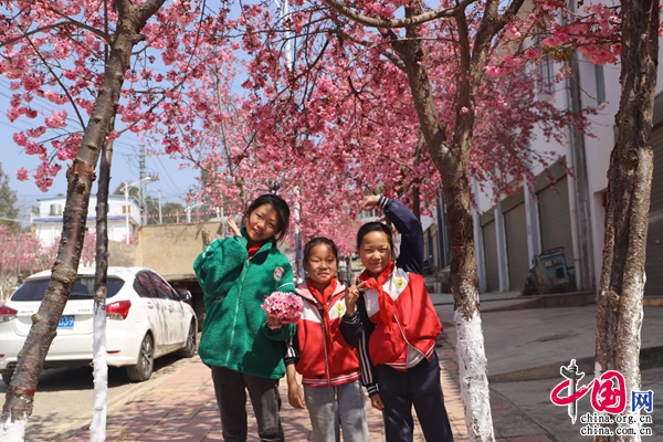 深闺不知春来早,满街樱花报春来。三月的昆明市东川区拖布卡镇掩映在粉红色的花海中,集镇的大街小巷开满了樱花,村庄的房前屋后开满了樱花,花团锦簇的樱花一片片、一株株,美丽的拖布卡镇春色烂漫,如诗如画。