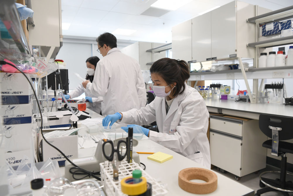 3月3日,工作人员在香港科学园生物医药科技培育计划 (Incu-Bio) 共享实验室工作。 新华社记者 陈铎 摄