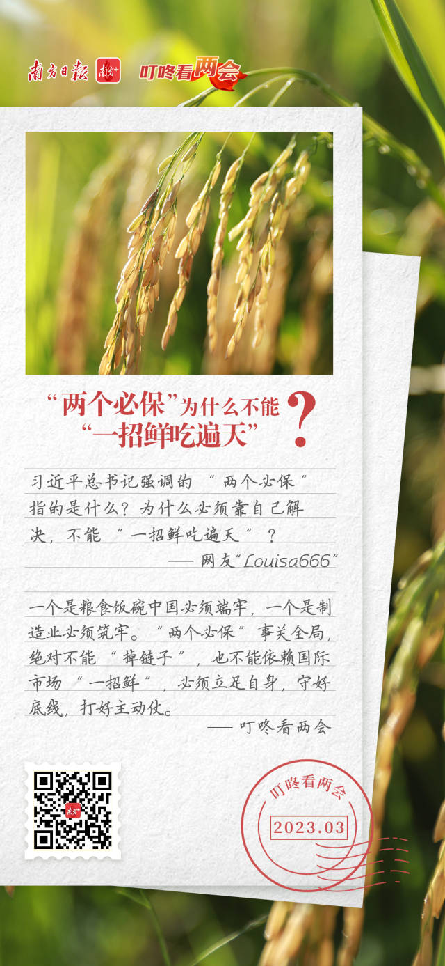 3月5日,习近平总书记在参加江苏代表团审议时指出,“我常说两个必保,一个是粮食饭碗中国必须端牢,再一个制造业必须筑牢。一个14亿多人口的大国,必须靠自己解决这两个问题,不能‘一招鲜吃遍天’,缺了哪一项国际市场都保不了我们。”这是总书记连续两年在全国两会上强调粮食安全,今年又强调筑牢制造业,彰显一以贯之的忧患意识和底线思维,深刻洞察发人深省。