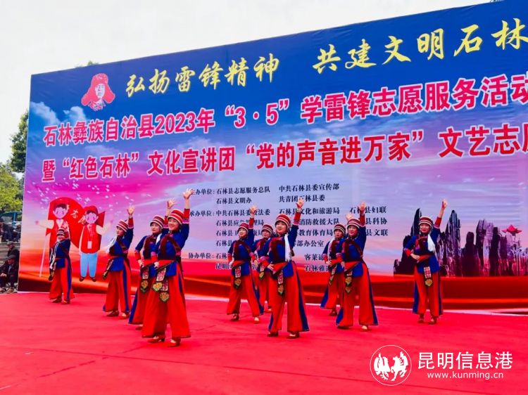 活动采取1个主会场和全县新时代文明实践中心(所、站)设分会场的“1+N”形式开展,石林县文联作为承办单位之一,积极组织各基层文联参与到活动中,以文艺表演的形式宣传弘扬雷锋精神。“学习雷锋好榜样……”熟悉的旋律从志愿者口中唱出,吸引到不少群众驻足围观,大家也跟着唱了起来。