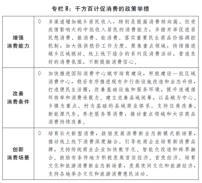 (计划报告中的专栏8:千方百计促消费的政策举措)