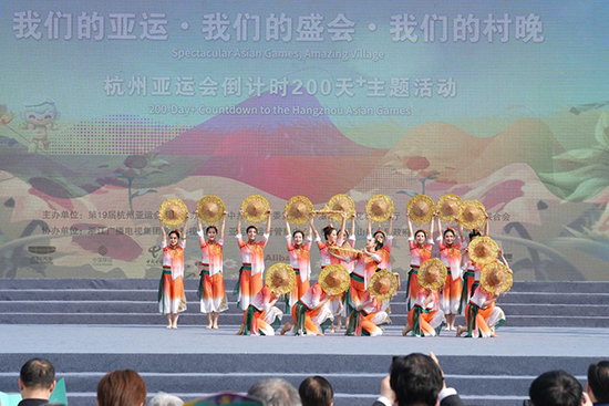 微风和煦,草长莺飞,钱塘江畔吹响亚运的号角。临平的滚灯、安吉的竹乐、磐安的长旗、温州的龙舟、绍兴的越剧、舟山的锣鼓……3月7日下午,杭州亚运会倒计时200天⁺之际,“我们的亚运·我们的盛会·我们的村晚”主题活动在亚运村成功举办,一系列富有浙江地方特色的文艺节目在杭州亚运村上演,来自全省11地市、对口支援地区的30余支演出队伍在“亚运舞台”上载歌载舞、秀出精彩。