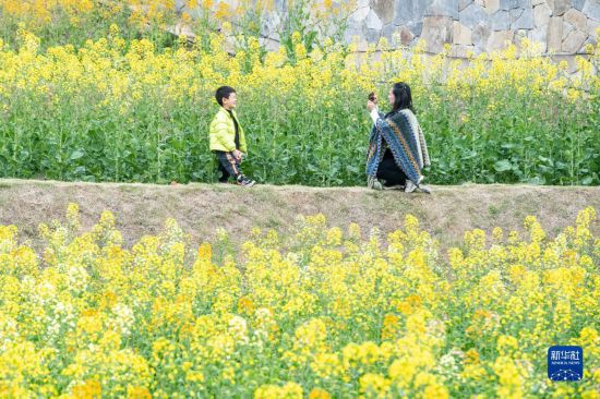 近日,重庆市两江新区水土高新科技园“两江田园牧歌”景区内,油菜花竞相绽放,吸引人们踏春赏花,感受春日之美。