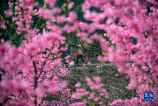 3月5日,两名游客在马龙区沈家山樱花谷观光游览。新华社记者陈欣波/摄
