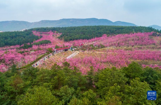 这是3月5日拍摄的马龙区沈家山樱花谷(无人机照片)。新华社记者陈欣波/摄