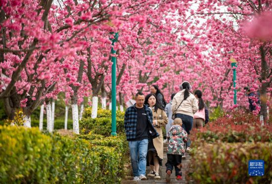 3月5日,游客在马龙区沈家山樱花谷观光游览。新华社记者陈欣波/摄