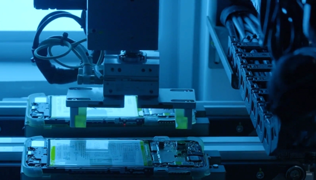 在OPPO东莞智能手机工厂里,1500余台机器人肩负性能测试、贴牌、自动取件、点胶、取料等的重任,一台手机从准备原料、贴片,到总装、测试,再到物流、交付,一共只需要6.8天,高峰时期,产能可以达到8000万台/年。