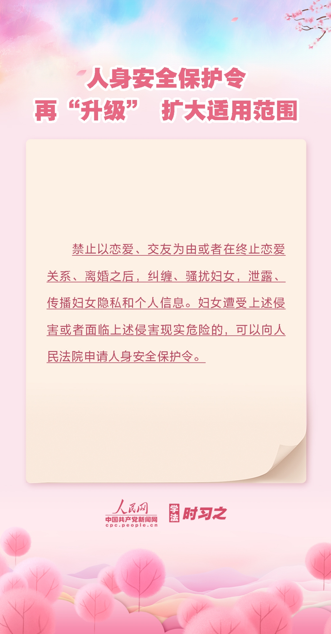 2023年1月1日,新修订的《中华人民共和国妇女权益保障法》正式实施。此次修订将男女平等基本国策纳入国民教育体系,同时完善政府相关保障措施,预防和处置性骚扰、性侵害制度机制。这对进一步维护妇女合法权益、改善妇女发展环境具有重大而深远的意义。今天是“三八”国际劳动妇女节,让我们一起了解一下。