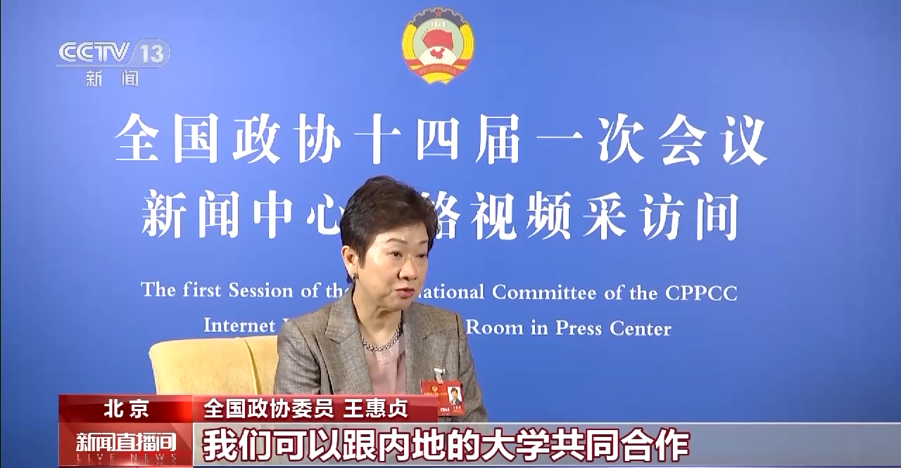 全国政协委员 王惠贞:我们可以跟内地的大学共同合作,加强高新科技发展,提升具国际竞争能力的产业园。香港国安法出台之后,香港社会的安全得到保障了,香港可以说是进入了新局面,现在是由治及兴的一个关键的时刻。香港也要抓住这个新的机遇,融进国家的发展大局。从现在开始,我们都要向着中国式现代化来努力,贡献我们的力量。