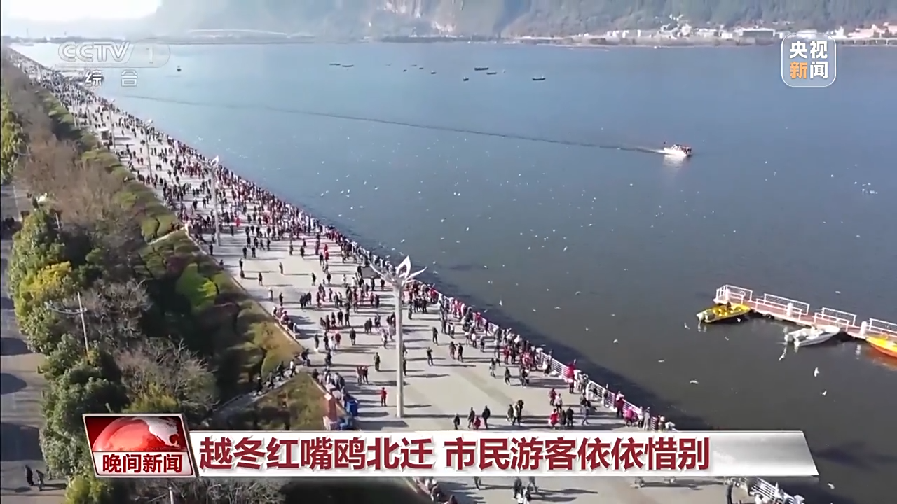 越冬红嘴鸥北迁繁殖 市民游客依依惜别