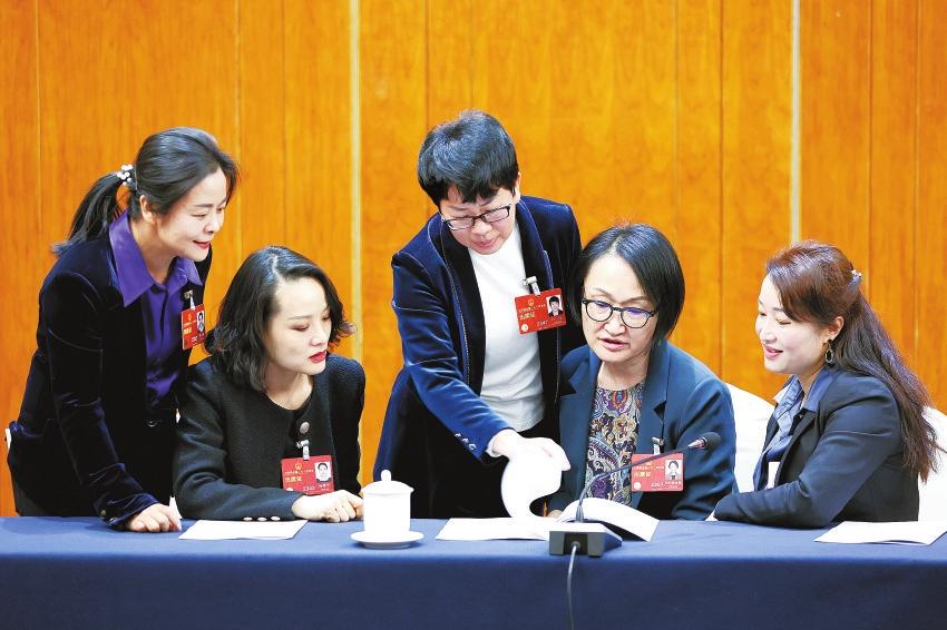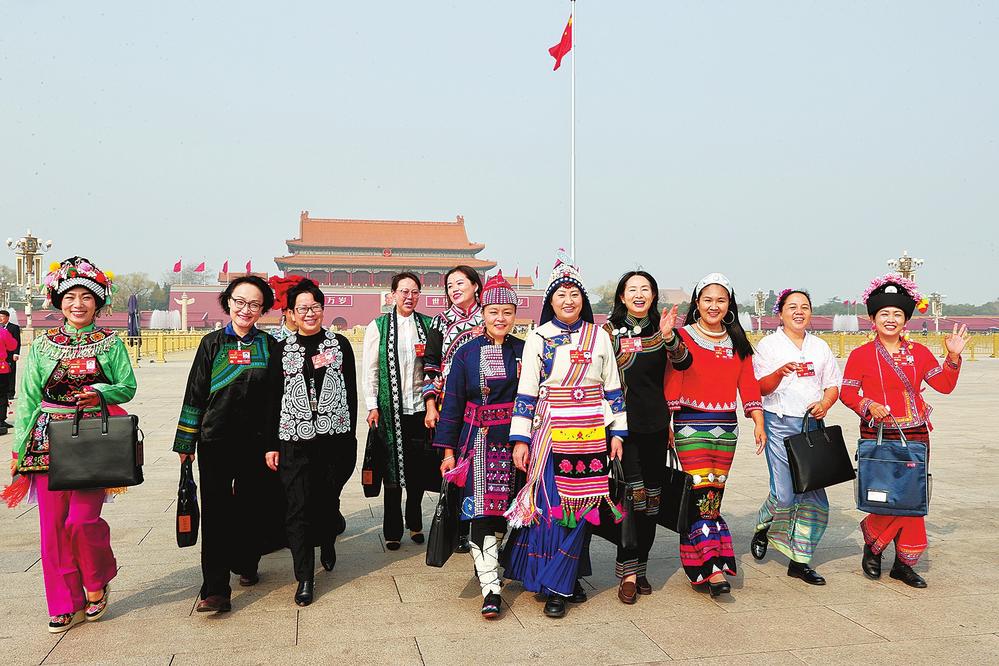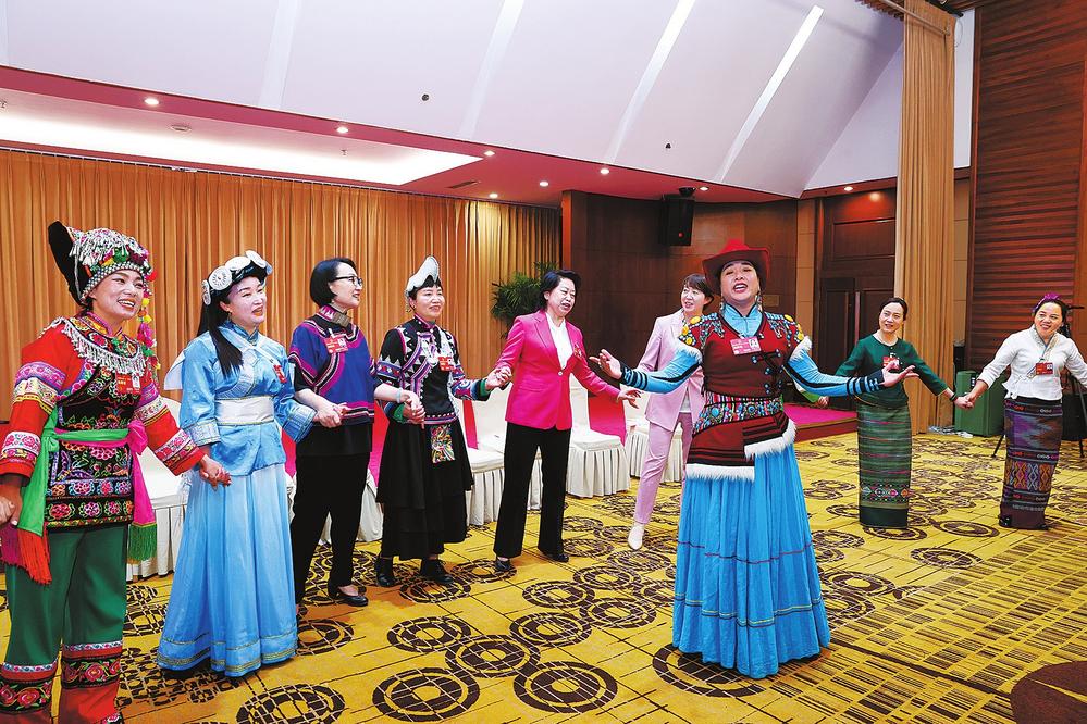 云南省代表团女代表们欢庆“三八”国际劳动妇女节