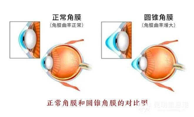 图为正常角膜与圆锥角膜对比图