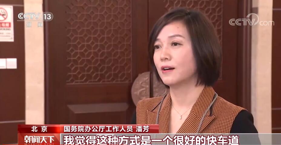 国务院办公厅工作人员 潘芳:我觉得这种方式就像是一个快车道,可以让我们迅速地听取、吸收、反馈代表委员的真知灼见,把它们更好应用到政府管理工作中,更好地去贯彻执行党中央国务院的政策。