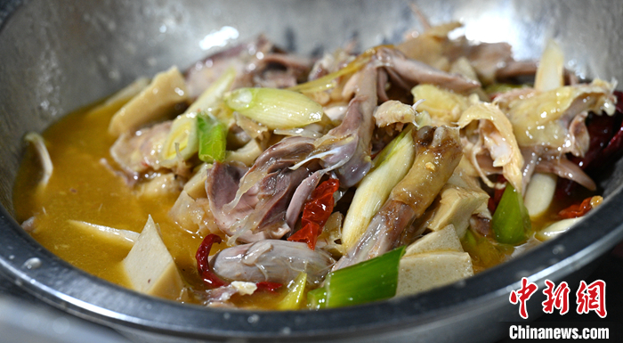 椒麻鸡是新疆的一道名菜,融合了麻和辣的味道。在新疆各地椒麻鸡都很受青睐,尤其在夏天的夜市,椒麻鸡几乎是夜市里每一桌的压轴菜品。 中新社发 确·胡热 摄