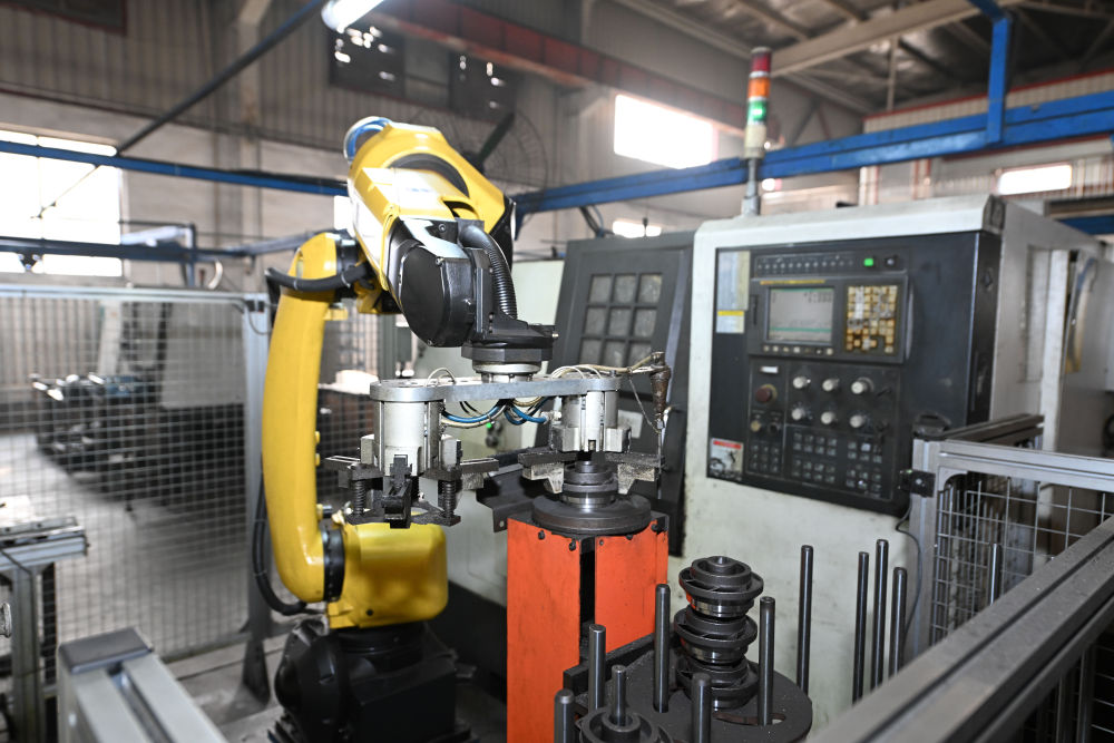 智能机器人在荣亨集团股份有限公司生产车间作业。新华社记者 孙凡越 摄