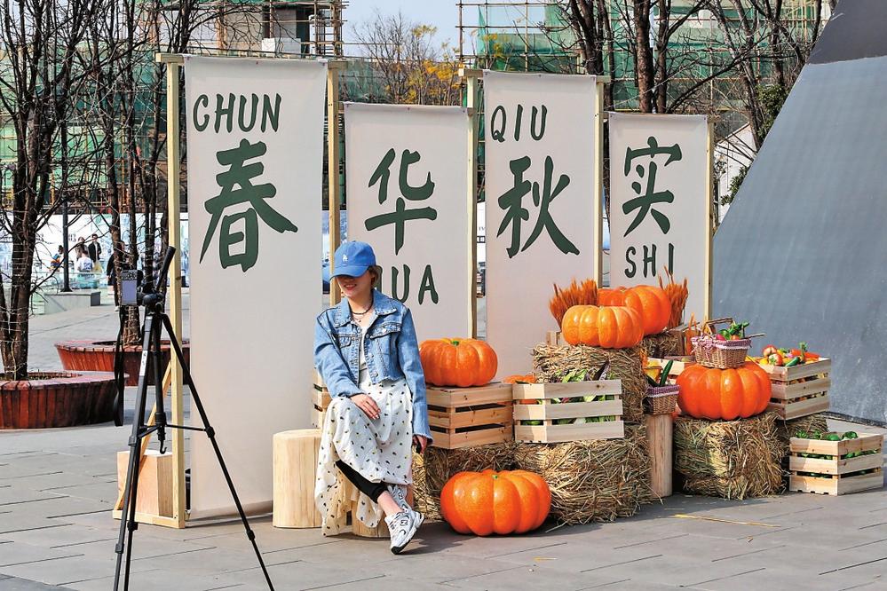 市集上除了有各类农副产品售卖,还有蔬果制作的花束以及创意视觉打卡点,摊位上“只有娇绿、没有焦虑”“三餐四季 有爱有你”等标语彰显着青年人的生活态度,让市集兼具艺术感与烟火气。