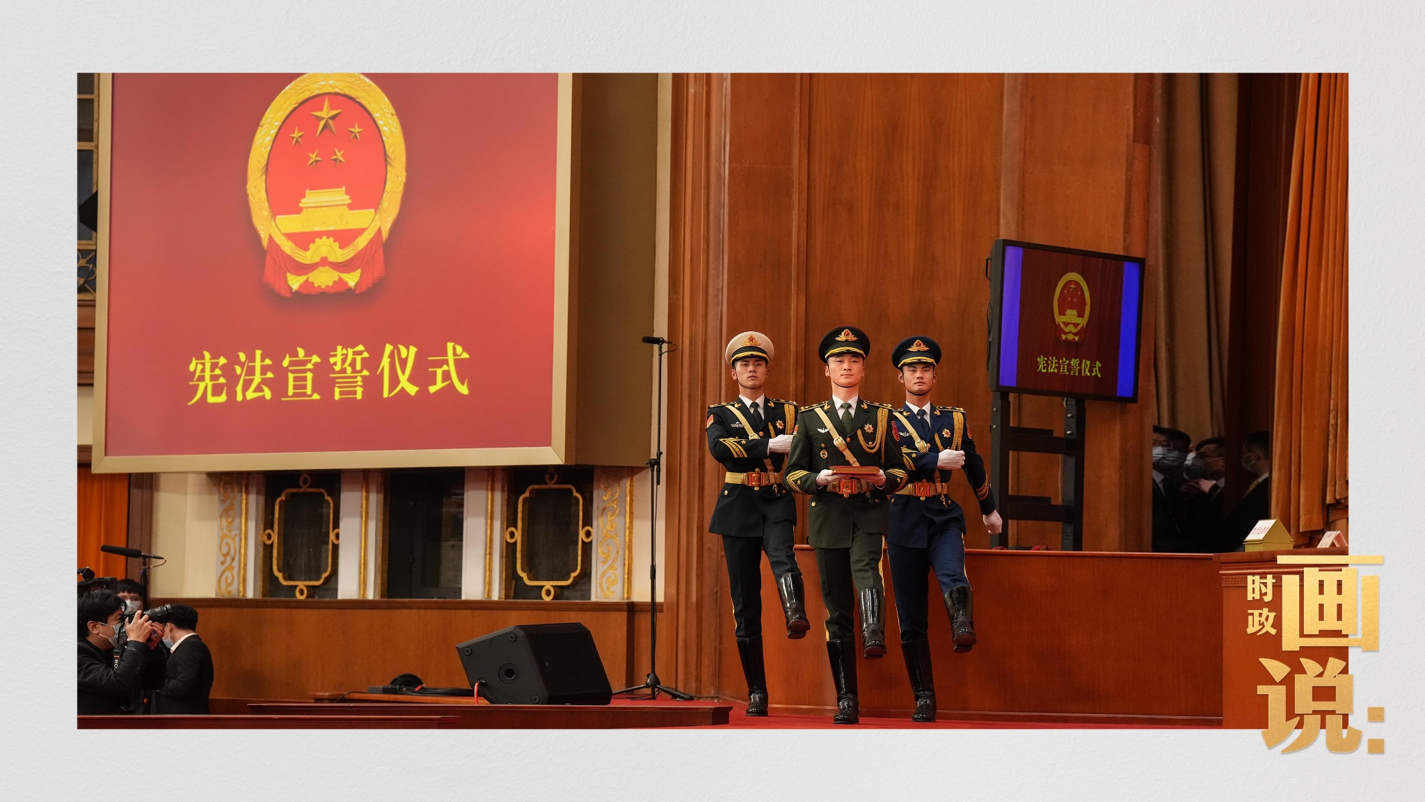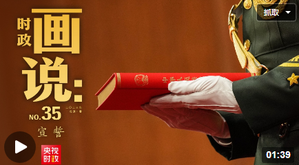 新当选的国家主席、中央军委主席习近平庄严宣誓