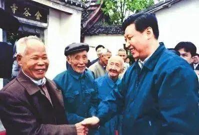 1999年11月,时任福建省委副书记、代省长的习近平在永定暴动旧址——金谷寺前慰问“五老”人员代表。