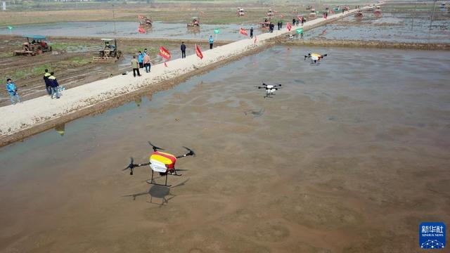 当日,在湖南省湘潭市湘乡市举行的湖南省供销合作社农业社会化服务大联盟成立仪式现场,种粮能手在200亩高标准农田里操作农机设备进行“比武”,通过拖拉机犁田、旋耕机翻耕、植保无人机飞防等农机技能比赛提升农业服务水平,助力春耕备耕。