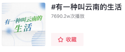抖音平台,#有一种叫云南的生活# #有一种生活叫云南# #天边有朵云南的云#等话题相关视频播放量超1.3亿次。