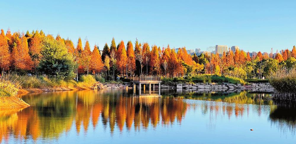 位于滇池北岸的海洪湿地恰是这样。驾一叶透明船底的小舟,徜徉在火红的水杉林间,再加上一抹落日余晖,让人仿佛置身于油画之中,吸引了众多市民游客前往打卡。海洪湿地公园也因此成为湿地公园中的“网红”。(云南日报 记者周灿 摄)