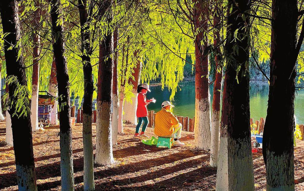 市民在海洪湿地享受温暖阳光
