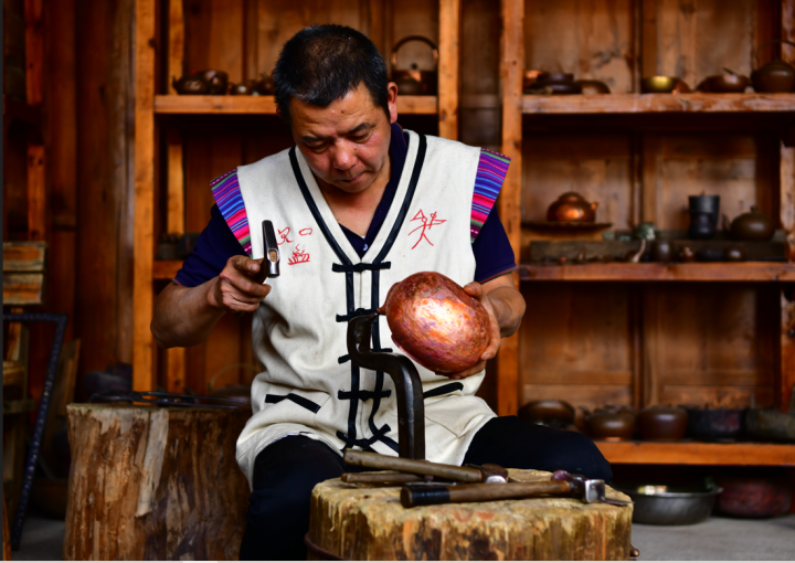 又如纳西族铜器制作技艺代表性传承人和善均,是目前全面掌握纳西族传统制铜工艺为数不多的铜匠。精湛的技艺不仅为他带来了每年30万元左右的收入,并通过让客人参与体验制铜工艺等互动形式,让更多人了解纳西族的铜文化……