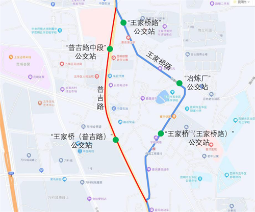 8路公交线路优化调整后,由轻机厂开往潘家湾的回程方向,同时新增停靠“普吉路中段、王家桥(普吉路)”这2个公交站;取消停靠“王家桥路、冶炼厂、王家桥(王家桥路)”这3个公交站。