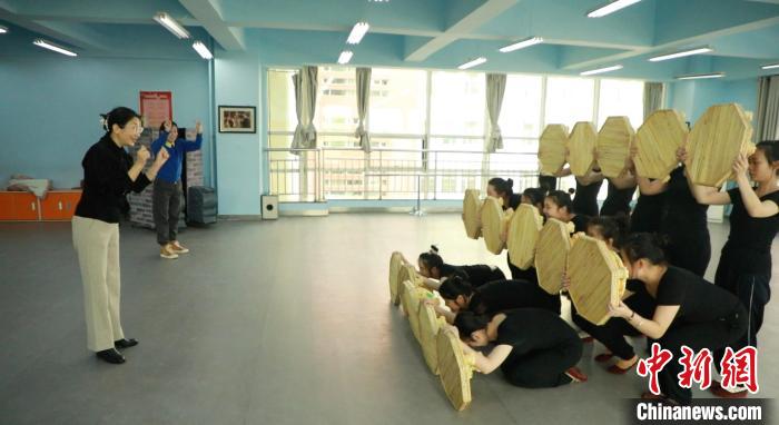 没有音乐,只有“啪啪”的拍子声和身体接触地板的摩擦声。排练的时候,孩子们的眼睛从不离开老师,伴随着老师手势的起落,做着每一个动作。