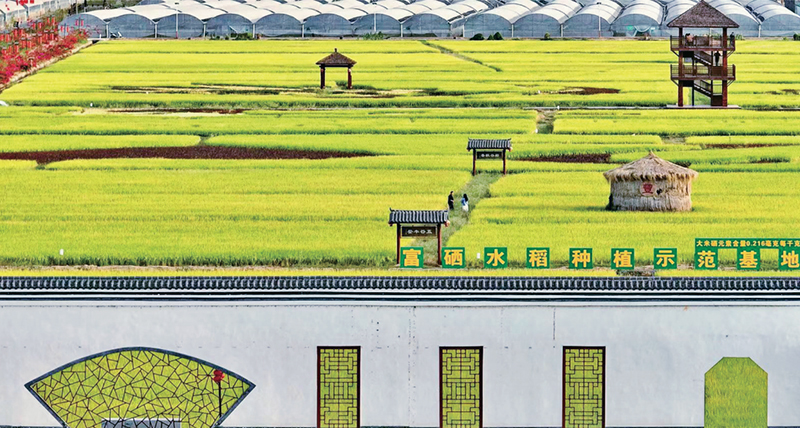 江西省赣州市于都县着力打造数字农业,推进富硒水稻生产设施化、机械化、绿色化,实现粮食提质增产和优粮优价。图为梓山镇潭头村的“富硒小镇”(2022年10月21日摄)。 视觉中国供图