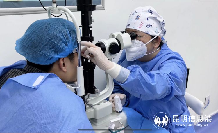 图为昆明眼科医院业务院长杨阳教授正在为患者进行全飞秒smile3.0手术