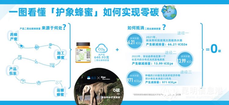2022年,IFAW和广州赛宝认证服务中心一起,耗时8个多月,根据村民使用太阳能热水器、社区架设光伏发电系统、种植生态友好经济作物这三个维度产生的碳减排量进行了周密的计算,中和掉了蜂蜜从生产到在盒马上架全链路产生的全部碳排放量。