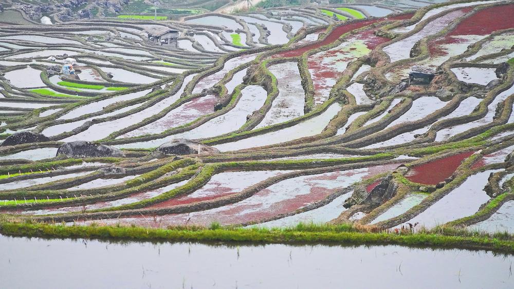 清晨,层叠的腊姑梯田褪去五彩斑斓的外衣,换上朴素的春装。田埂上,村民们在细心地观察着自家水田里的变化,为即将到来的插秧做好最后的准备。村民劳动的场景与梯田融为一体,相映成景、相映成趣,形成一幅山水田园画卷。(云南日报记者 饶勇 通讯员 李建东 文/图)
