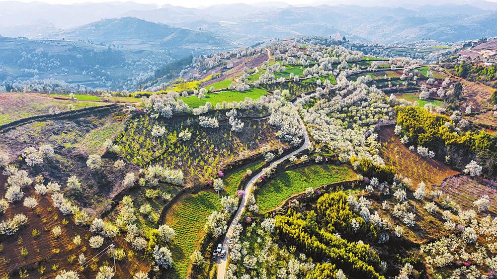 近日,开远市西山片区梨花谷内2.8万亩梨花恣意绽放,犹如绵延起伏的白色“花海”,构成一幅美丽的迎春图。